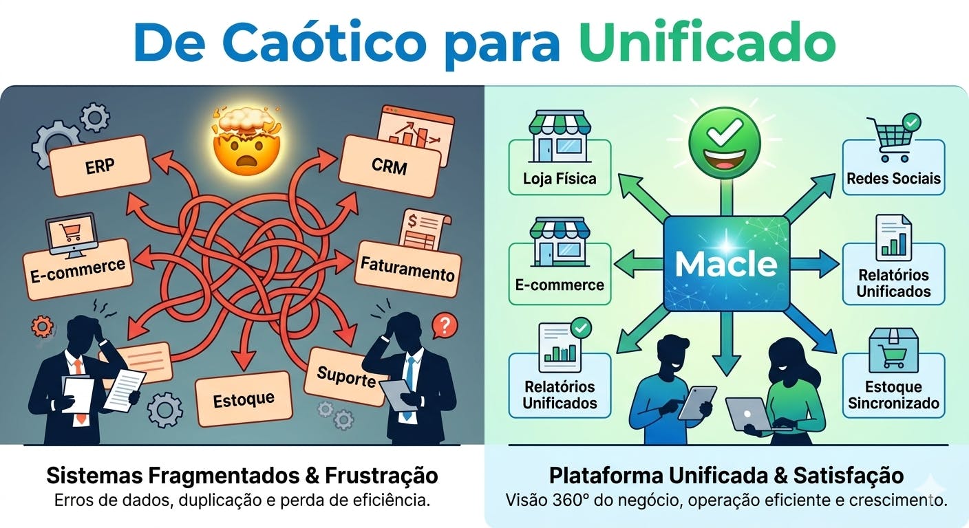 Chega de gerenciar sistemas. É hora de gerenciar um negócio de sucesso. A Macle oferece a base tecnológica para que sua marca de moda opere de forma integrada, inteligente e à prova de falhas.